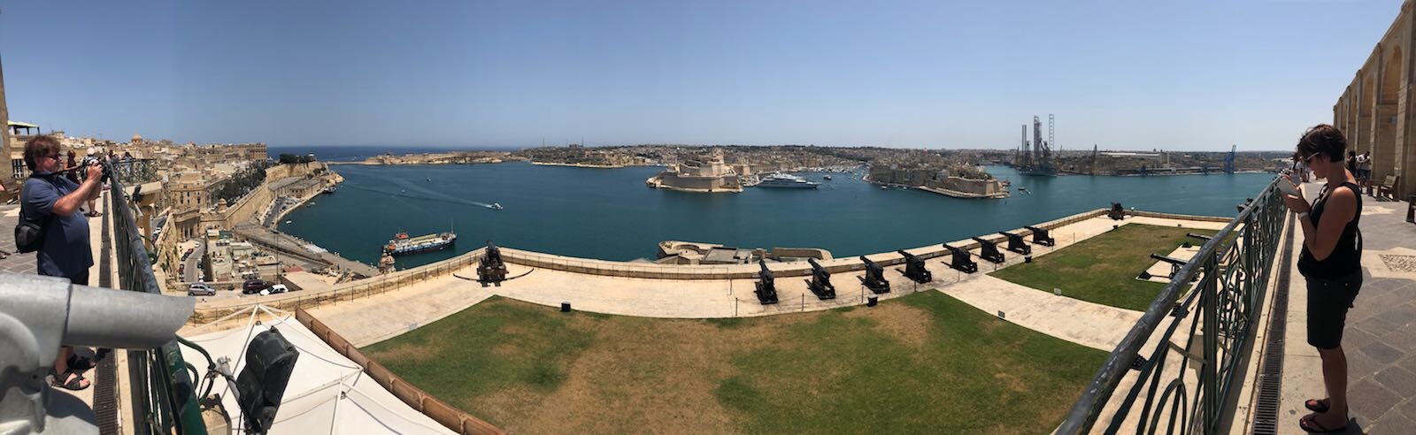 Vanochtend om 10.00uur vertrokken we met de bus en watertaxi naar Valletta centrum. Het was zo vroeg al erg heet en na de watertaxi had iedereen ’t zweet al in de bilnaad (geen foto) 😉 Na een wandeling door de mooie stad (mensen, kom naar Malta!) streken we neer op een terrasje in de schaduw. Het kwik zat inmiddels vér boven de 30•C.
