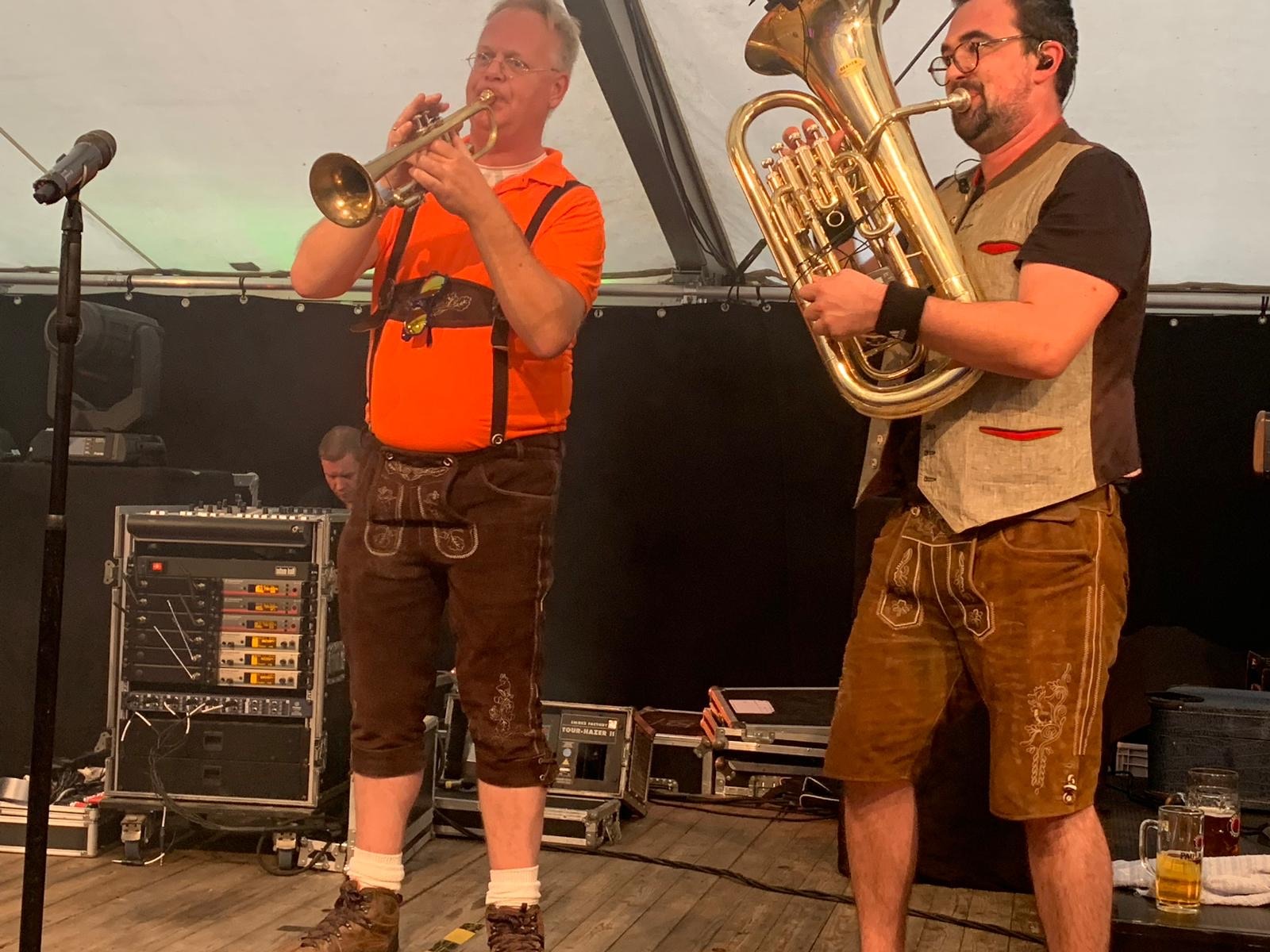 Dit weekend was het weer zo ver: Het (inmiddels traditionele) optreden op het Oktoberfest in Dörenthe. Vanwege een probleempje met de vergunning was het feest vervroegd, maar dat deerde de bezoekers niet. Midden op de middag was het al vroeg druk in de grote tent. Mensen haakten in bij walsjes en klommen op de banken bij de Duitse schlagers. Een prachtig mooi feest dus.