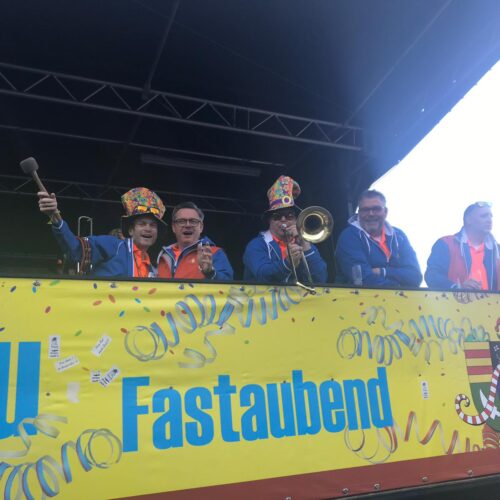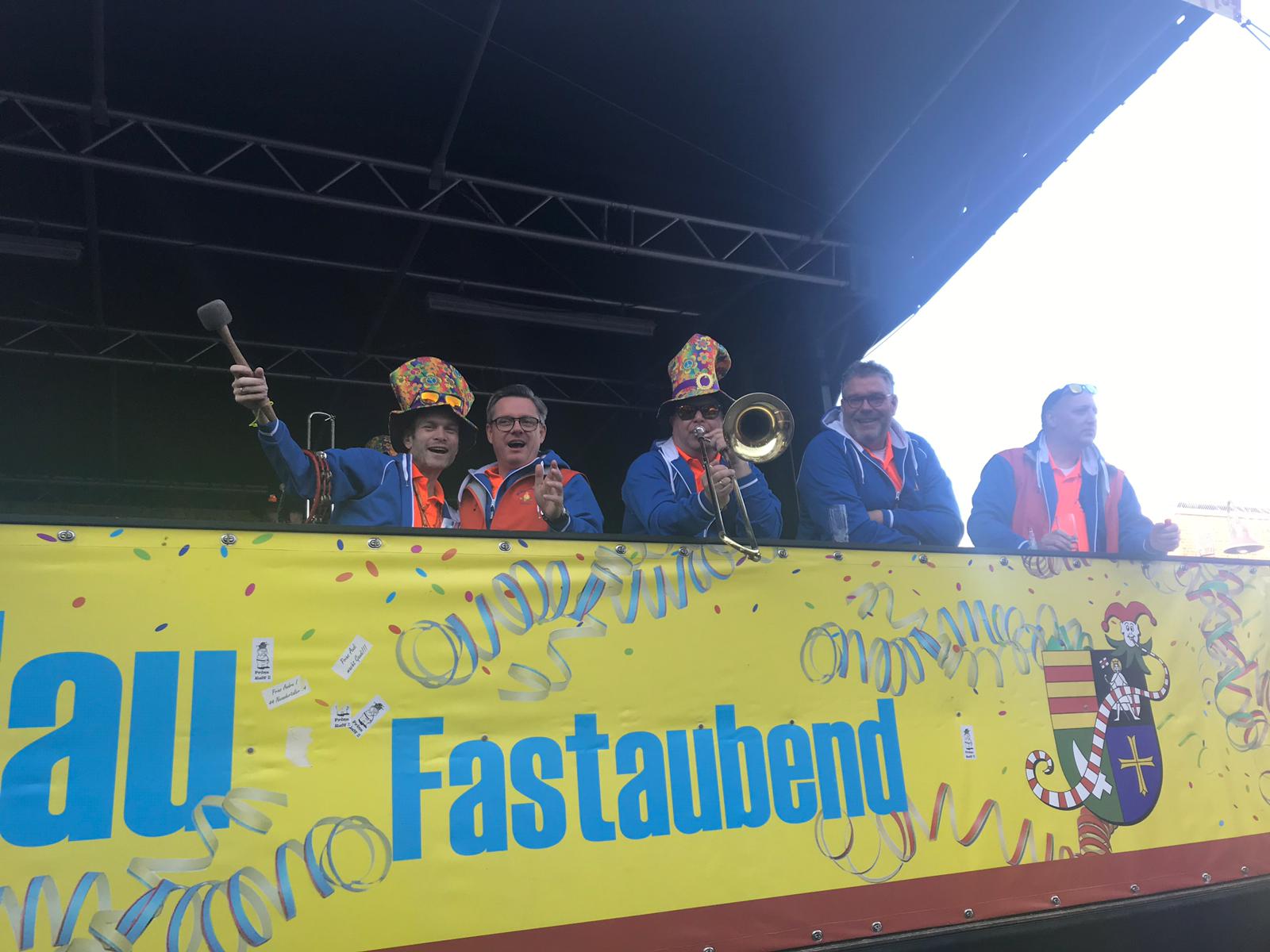 We zijn een aantal jaren naar Düsseldorf afgereisd. Heel erg gezellig, alleen een behoorlijke aanslag op de kas. De laatste jaren spelen we op carnavalszondag weer in Duitsland. Dit jaar in de optocht in Neuss.