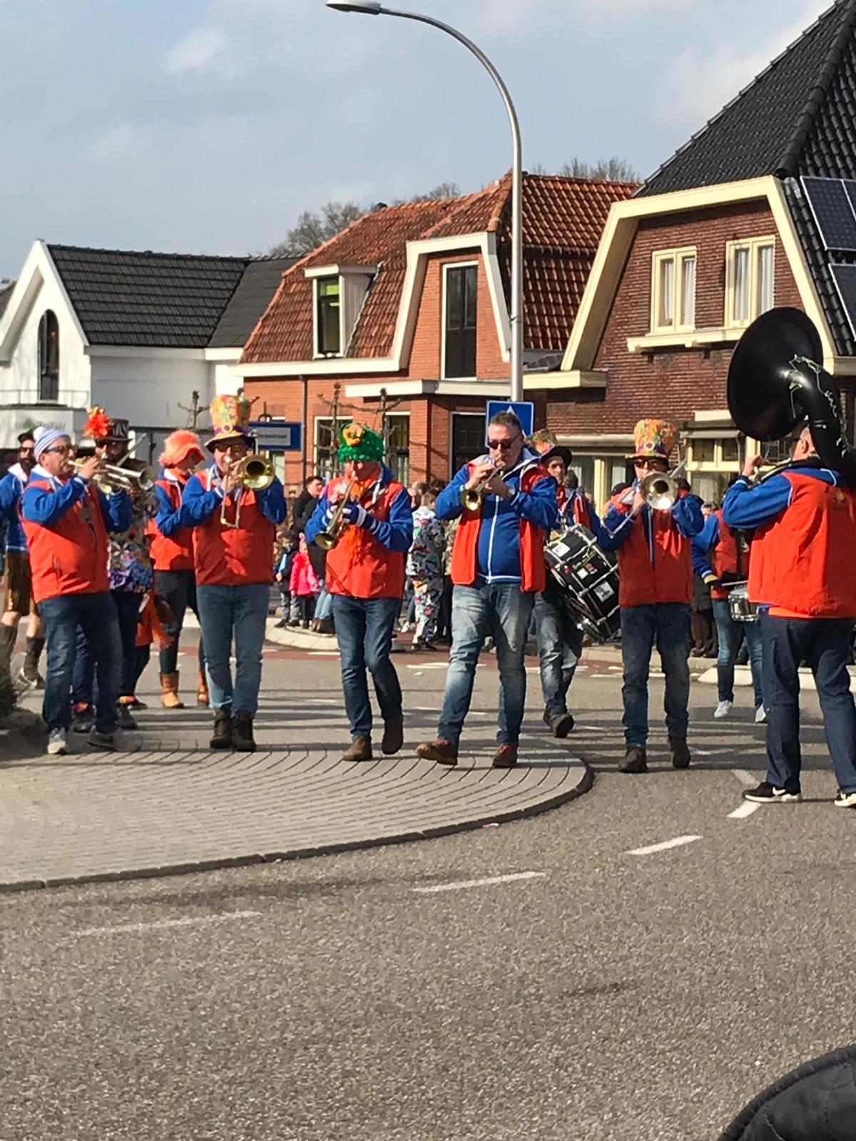 Onder een stralende voorjaarszon, vond de optocht van Keunedarp plaats. Door het weer en de steeds stijgende kwaliteit van deelnemers, was het dit jaar weer drukker dan de vorige jaren. Wij hebben als huisorkest van de Fienpreuvers een vrije rol en vermaken het publiek voorafgaand aan de optocht. Door de oppasdienst van bekkenist Bram was er ruimte voor een vervanger. Deze rol werd met verve ingevuld door Otje!